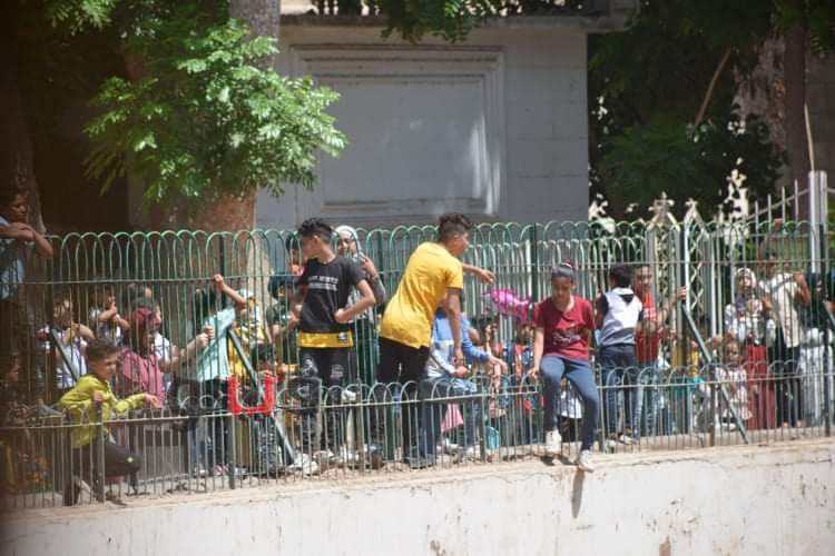 شقاوة الأطفال.. في حديقة الحيوان يتسلقون الأسوار وجبلاية القرود.. رابع أيام العيد | فيديو وصور