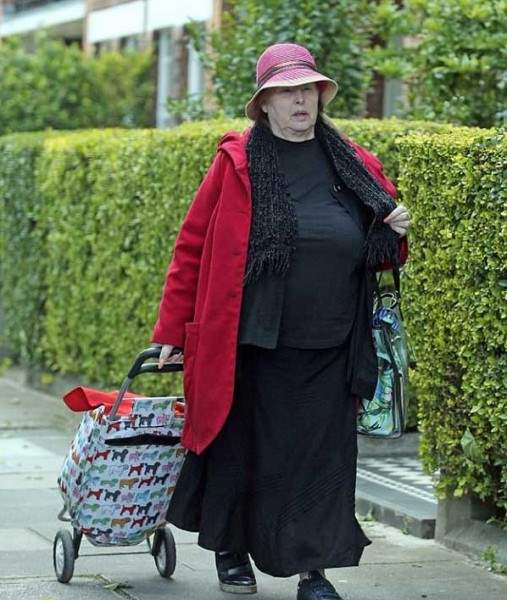 ورصدتها الكاميرا صورة ثريا بعد تقدمها بالعمر وهي تسير في طريقها إلى محطة للحافلات في غرب لندن في معطف أحمر وتنورة قصيرة فضفاضة وتي شيرت وسترة، وترتدي قبعة على رأسها وتسوق خلفها عربة تسوق "ترولي".