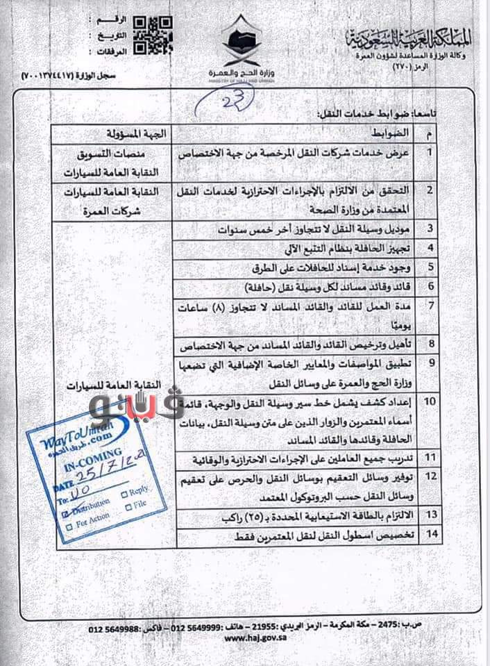 - تنظيم سفر المعتمرين وضمان حقوق المواطنين وراحتهم.