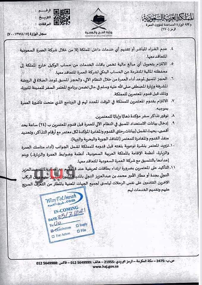- شركات السياحة هي الوحيدة المسموح لها بتنظيم العمرة تطبيقاً للقانون وضوابط العمرة المصرية والسعودية.