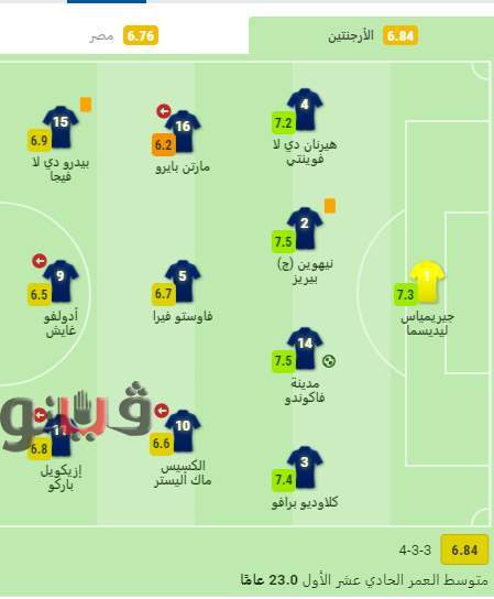 بينما جاء تقييم لاعبي منتخب الأرجنتين كالتالي
