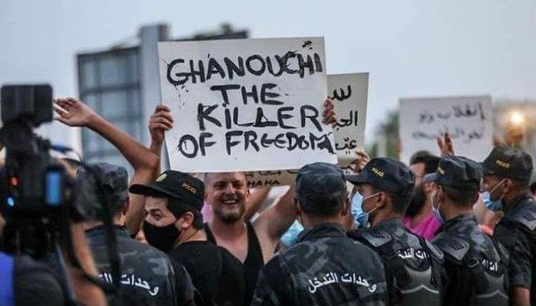 وعلى الفور أعلن الغنوشي رئيس البرلمان الاعتصام أمام مقر مجلس النواب عقب إعلان الرئيس قيس سعيد تجميد عمل البرلمان ورفع الحصانة وإعفاء رئيس الحكومة هشام المشيشي من مهامه، ودعا أنصاره للنزول إلى الشارع دفاعا عن منصبه.