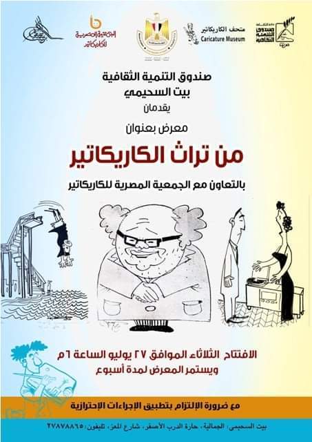 يستضيف مركز إبداع بيت السحيمي بشارع المعز، والتابع لقطاع صندوق التنمية الثقافية في السادسة من مساء غد الثلاثاء الموافق 27 يوليو الجاري، معرضا لأعمال الفنان الكبير الراحل صلاح جاهين، والذي يقام بالتعاون مع الجمعية المصرية للكاريكاتير، حيث يستمر حتى 2 أغسطس المقبل.