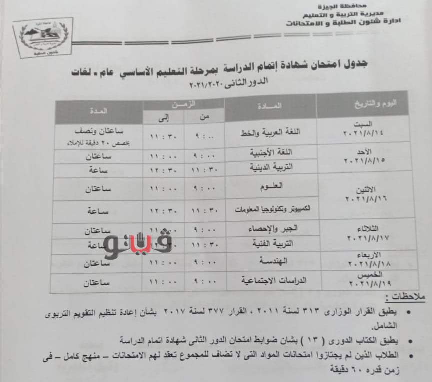 علما بأن جداول مراحل النقل بالإدارات التعليمية وجدول الشهاده الأعدادية موحدة على مستوى محافظة الجيزة خلال الفترة من 14 إلى 19 أغسطس 2021.