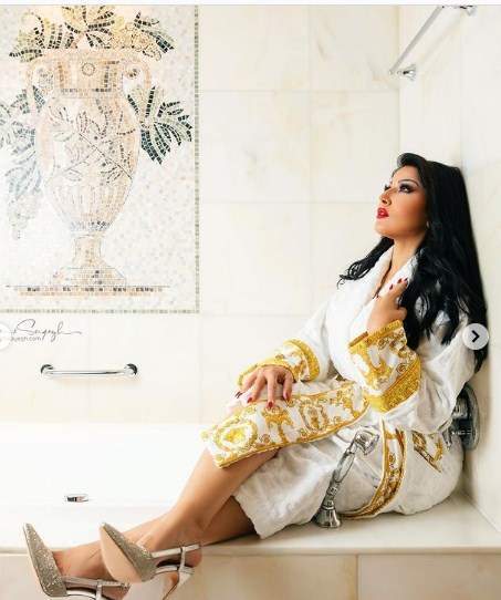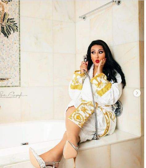وظهرت سمية الخشاب خلال الصور وهي ترتدي روبا أبيضا داخل الحمام، لتثير الجدل مجددا بعد الصور التي نشرتها مؤخرا.