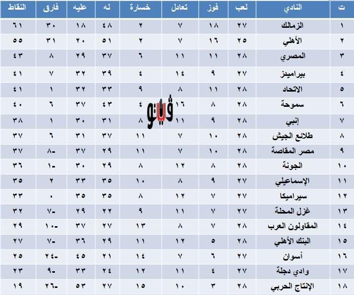 1- الزمالك 61 نقطة