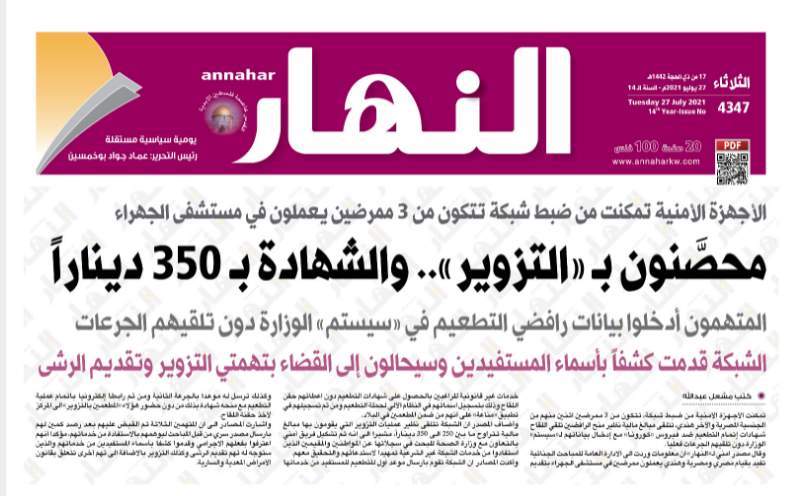 بينهم مصريون والشهادة بـ350 دينارا.. سقوط شبكة لتزوير شهادات تطعيم كورونا بالكويت
