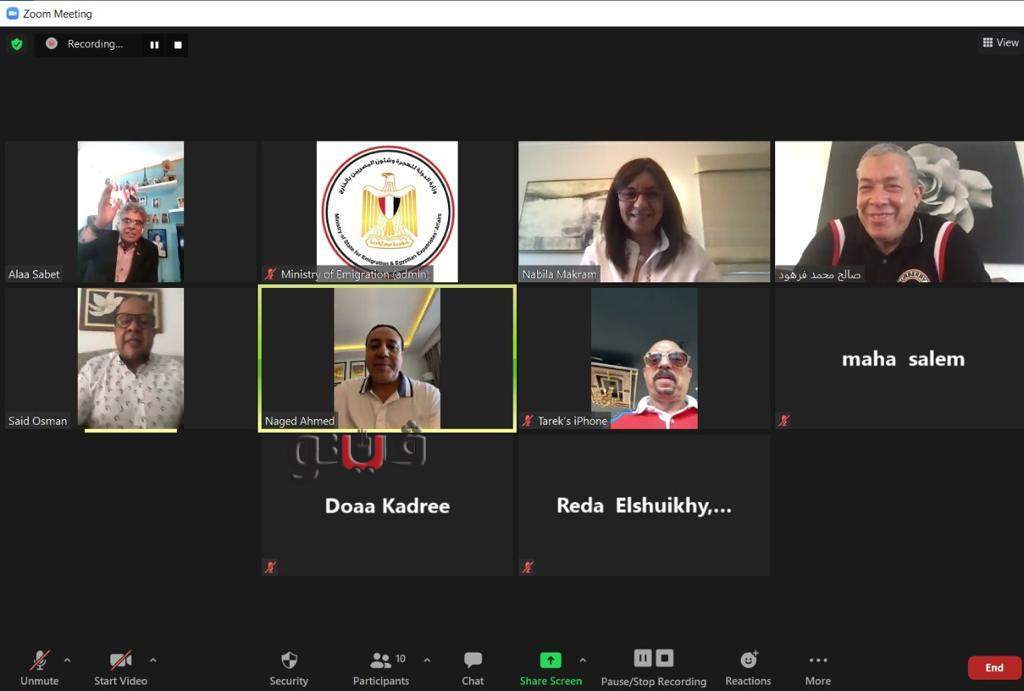 عقدت السفيرة نبيلة مكرم عبد الشهيد، وزيرة الدولة للهجرة وشئون المصريين بالخارج، اجتماعًا عبر تطبيق "زووم"، بحضور عدد من ممثلي الجاليات المصرية بالخارج، استعدادا لتنظيم الوزارة لمؤتمر للمصريين بالخارج لدعم رؤية القيادة السياسية في الجمهورية الجديدة والإسهام في المشروع القومي لتنمية الريف المصري "حياة كريمة"، والمقرر انعقاده خلال شهر أغسطس الجاري.