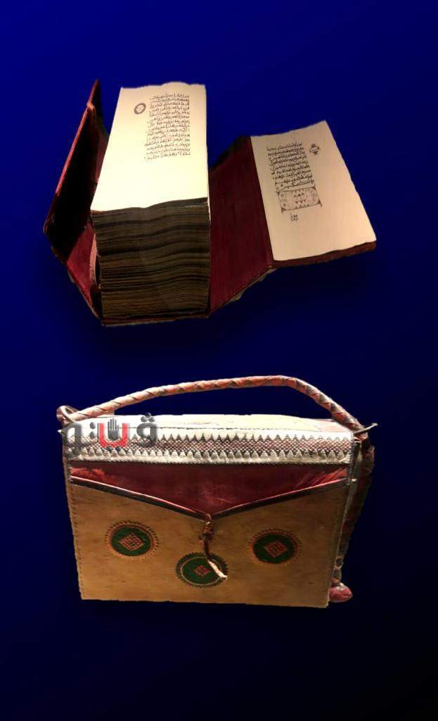 وجرت العادة على حفظة داخل حافظة جلدية سهلة الحمل ليتنقل به المسافرين من مكان لآخر أو يستخدمونه للقراءة في رحلات الحج والتجارة والسفر لمسافات طويلة، ونلاحظ مراعاة الناسخ لحجم وهيئة المصحف ليلائم غرض القراءة أثناء التنقل والترحال ويرجع للقرن 12 هجرية /18 م.