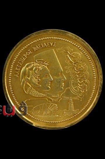 يعرض ميدالية ذهبية تذكارية أهديت للملك فاروق الأول تم إصدارها بمناسبة افتتاح جامعة فاروق الأول (جامعة الإسكندرية حاليا) عام 1942 م .