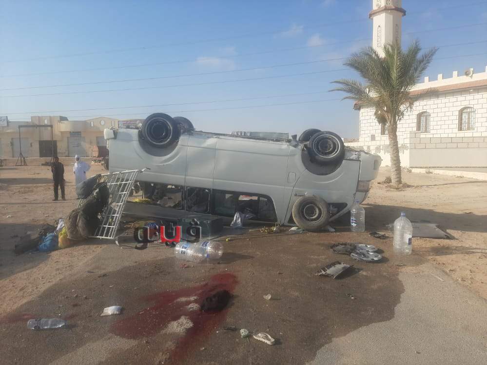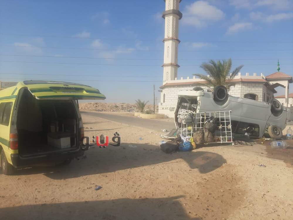 الصور الأولى لمصرع وإصابة 25 شخصًا في انقلاب ميكروباص بالساحل الشمالي
