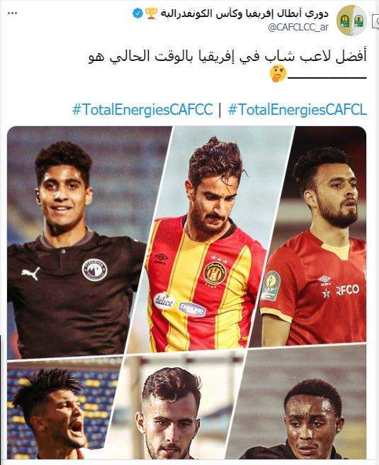 ونشر حساب البطولتين عبر تويتر، صور 6 مواهب تألقوا خلال هذا الموسم، منهم صلاح محسن "الأهلى"، إبراهيم عادل "بيراميدز"، محمد على بن رمضان "الترجى التونسى" وماسوبى "كايرز تشيفز الجنوب إفريقى".