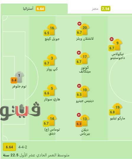 فيما جاء تقييم لاعبي منتخب أستراليا كالتالي: