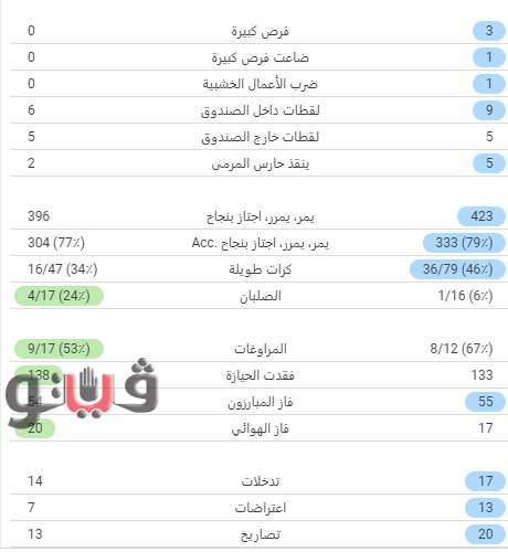 ووفقا لموقع الاحصائيات سوفا سكور، جاءت إحصائيات مباراة منتخب مصر الأولمبي أمام نظيره الأسترالي كالتالي: