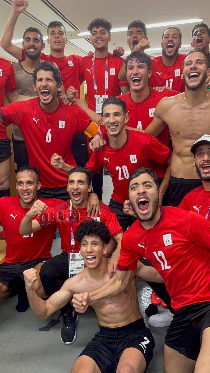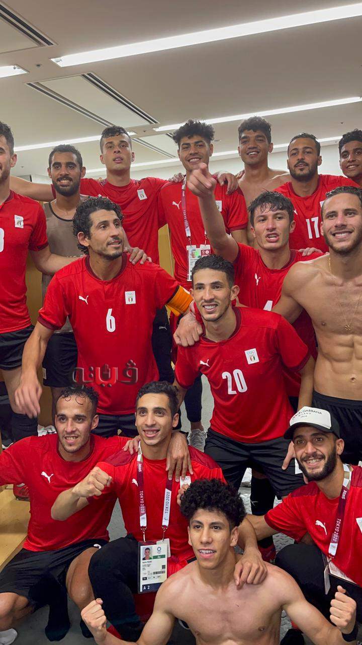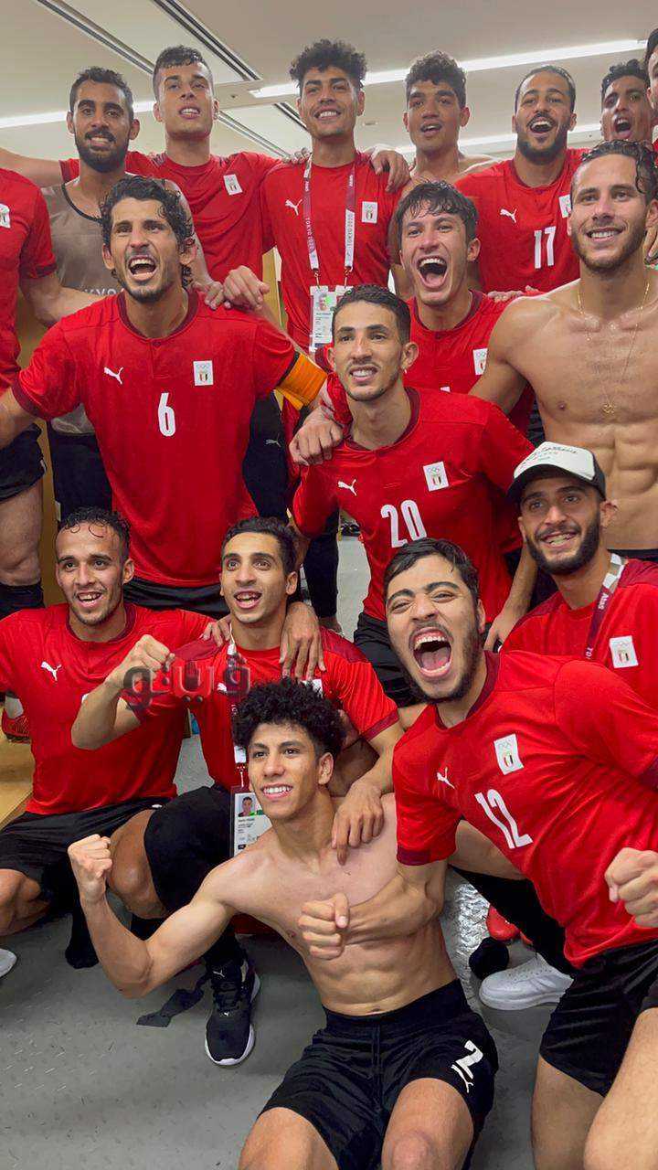 احتفل لاعبو منتخب مصر الأوليمبي داخل غرفة خلع الملابس بالفوز على المنتخب الأسترالي، والتأهل للدور ربع النهائي بمنافسات كرة القدم بدورة الألعاب الأولمبية طوكيو 2020.