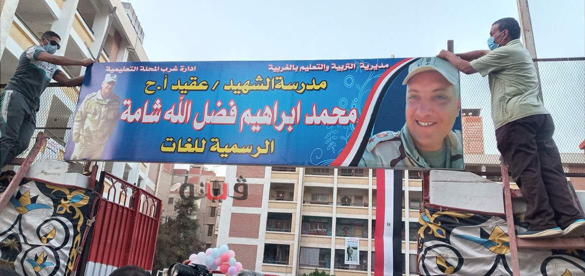 شهد وفد لجنة الإدارة المحلية بمجلس النواب، برئاسة المهندس أحمد السجيني، وضع "يافطة" باسم الشهيد فضل الله بالمحلة الكبرى، على مدرسة الشهيد عقيد أركان حرب محمد إبراهيم فضل الله شامة الرسمية للغات.