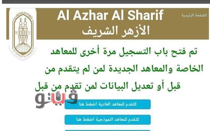 أعلنت إدارة قطاع المعاهد الأزهرية عن إعادة فتح باب التسجيل مرة أخرى للطلاب في مرحلتى رياض الأطفال والصف الأول الابتدائي للمعاهد الخاصة والمعاهد الجديدة لمن لم يتقدم لها الطلاب من قبل.