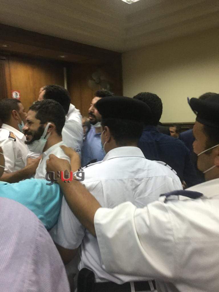 شاهد.. حسام مؤنس بالزي الأبيض أثناء محاكمته في قضية خلية الأمل