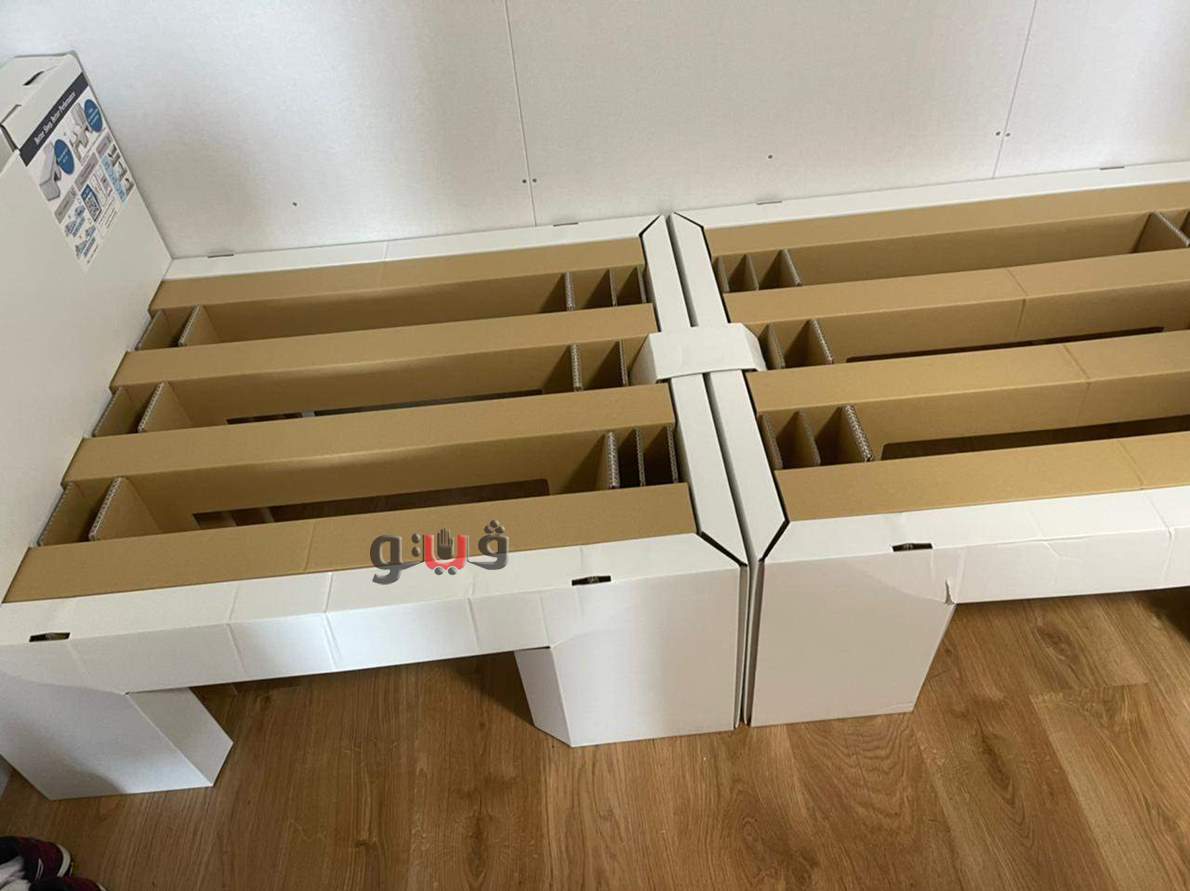 وأوضحت أن تلك الأسرة لا تقوى على حمل أكثر من شخص واحد، حيث إنها مصنوعة من الكارتون والورق المقوي.