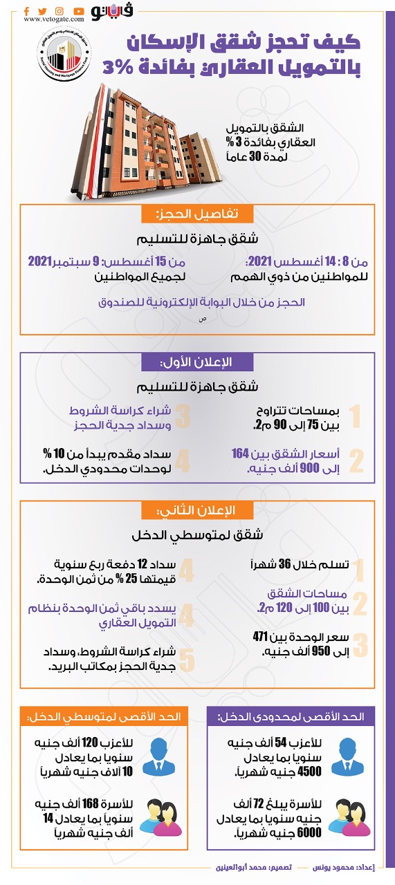 كيف تحجز شقق الإسكان بالتمويل العقاري بفائدة 3%| إنفوجراف