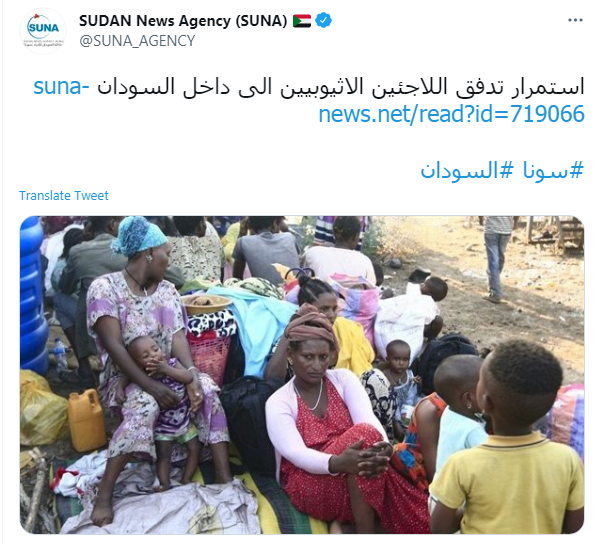 أكدت وكالة الأنباء السودانية "سونا" زيادة تدفقات اللاجئين من إقليم تيجراي إلى الأراضي السودانية،وتواصلت زيادة اللاجئين منذ اندلاع القتال في إثيوبيا بين الجيش الإثيوبي وقوات تحرير تيجراي، وخاصة بعد الإبادة الجماعية التي تعرض لها سكان تيجراي، نهاية العام الماضي، حيث وصل إلى منطقة باسندة في القضارف في أمس، الإثنين، فقط أكثر من 90 لاجئا إثيوبيا.