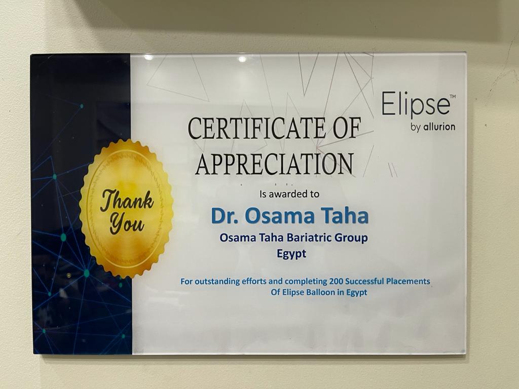 ودفع هذا الإنجاز الكبير الشركة إلى تكريم المجموعة خلال فعاليات المؤتمر السنوي لجراحات السمنة بدولة الإمارات الشقيقة، إذ اعتبرته المجموعة فخرًا كبيرًا لها خصوصًا مع وجود علم مصر على قمة إحصائيات الشركة بجوار اسم د. أسامة طه قبل العديد من مراكز السمنة فى أوروبا والشرق الأوسط، في مشهد يدعو للفخر لكل مصري، كما أن هذا الإنجاز دفع الشركة إلى الاتفاق مع البروفيسور أسامة على تعميم البروتوكول الذي تم تطويره من خلال المجموعة ليستخدم في مراكز السمنة على مستوى العالم.