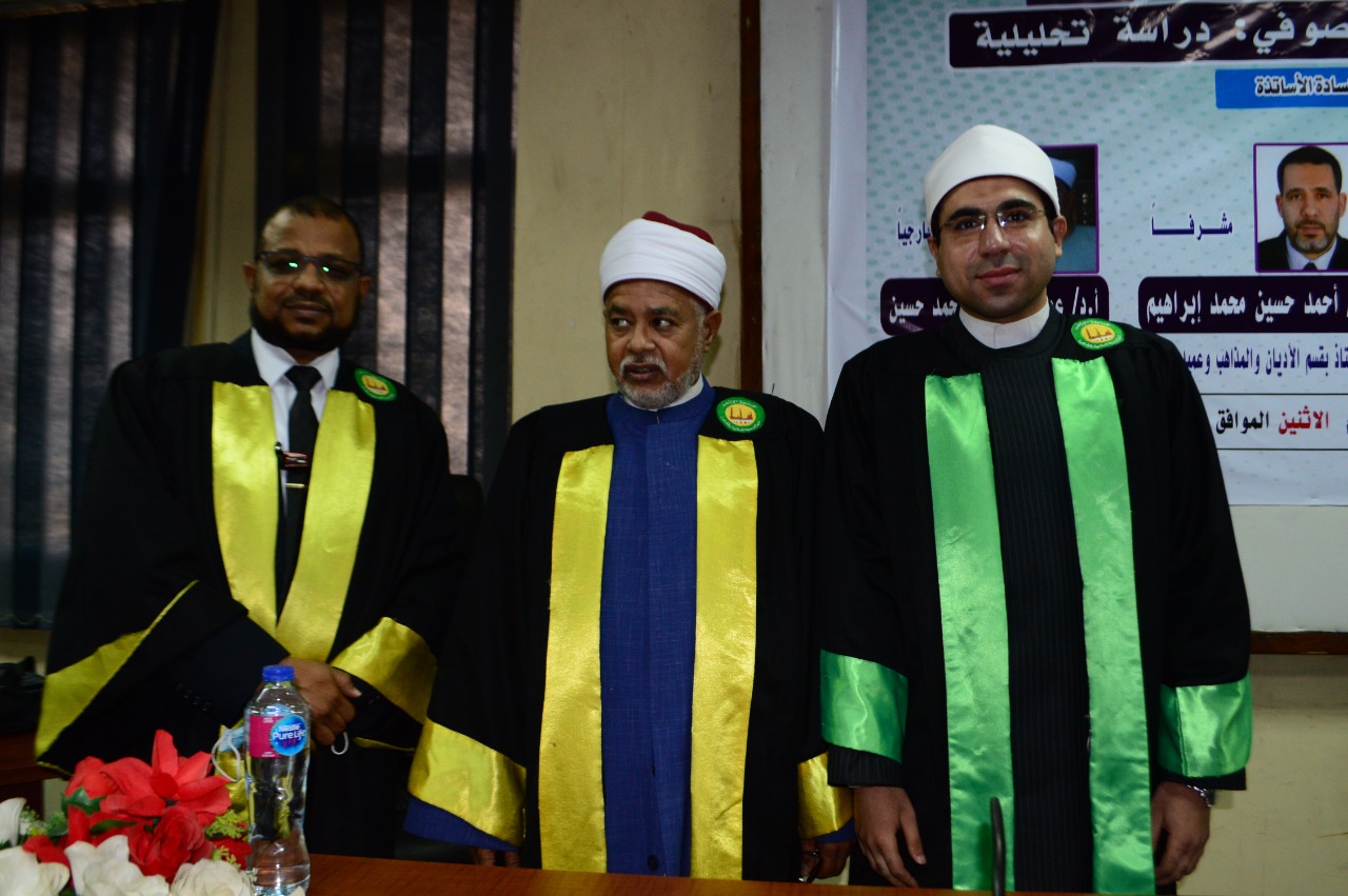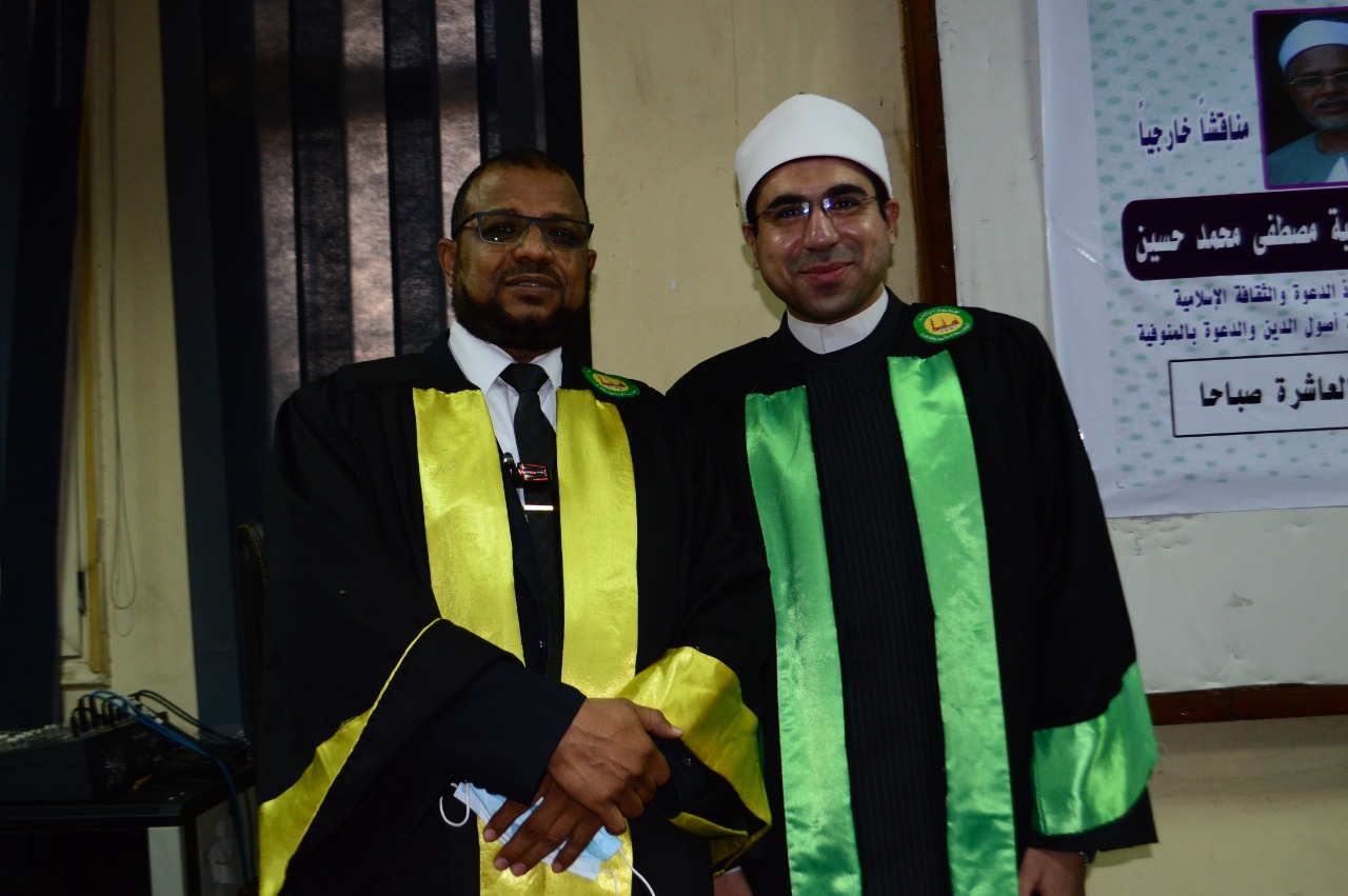 وتكونت لجنة المناقشة والحكم على الرسالة من الدكتور أحمد حسين محمد إبراهيم، أستاذ الأديان والمذاهب وعميد كلية الدعوة الإسلامية بالقاهرة “مشرفًا”، الدكتور عطية مصطفى محمد حسين، أستاذ الدعوة والثقافة الإسلامية ووكيل كلية أصول الدين والدعوة بالمنوفية، “مناقشًا خارجيًّا”، الدكتور محمد عبدالدايم علي سليمان الجندي، أستاذ الأديان والمذاهب ووكيل كلية الدعوة الإسلامية للدراسات العليا والبحث العلمي.