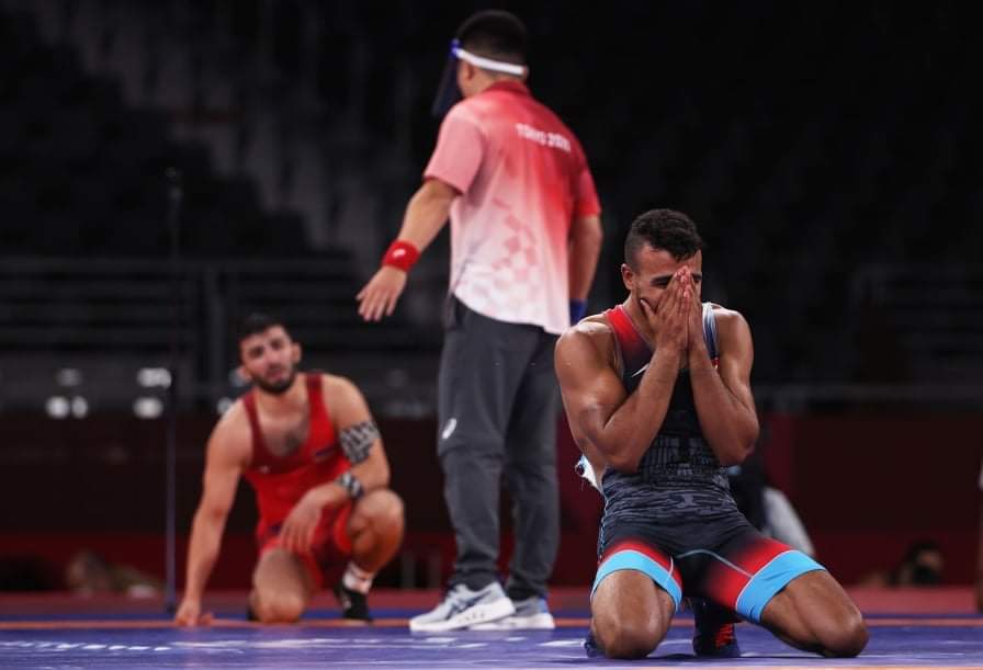 رصدت عدسات الكاميرا لحظة استلام محمد كيشو، لاعب المنتخب الوطني للمصارعة، الميدالية البرونزية بعد فوزه بمنافسات وزن 67 كجم، بدورة الألعاب الأولمبية طوكيو 2020.