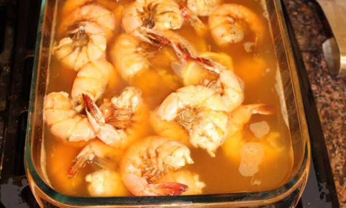 - نترك الجمبرى منقوع فى الملح والماء والليمون لمدة ساعة، ثم نغسله بعدها بالماء الجاري جيدا، ونتركه يتصفى.