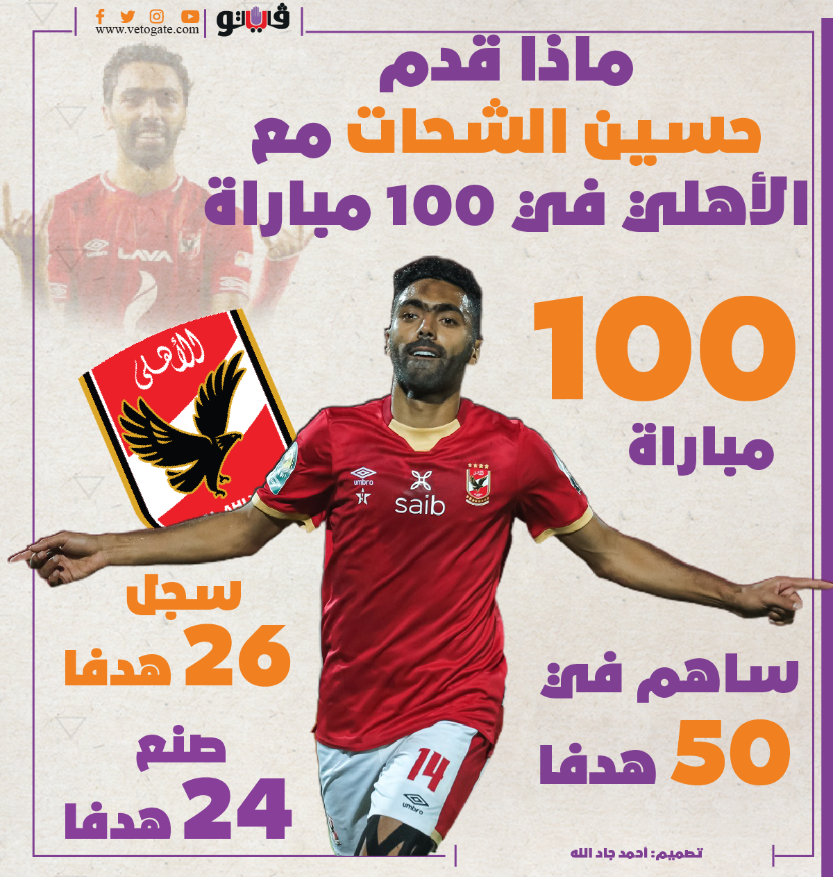 ماذا قدم حسين الشحات في 100 مباراة بقميص القلعة الحمراء| إنفوجراف