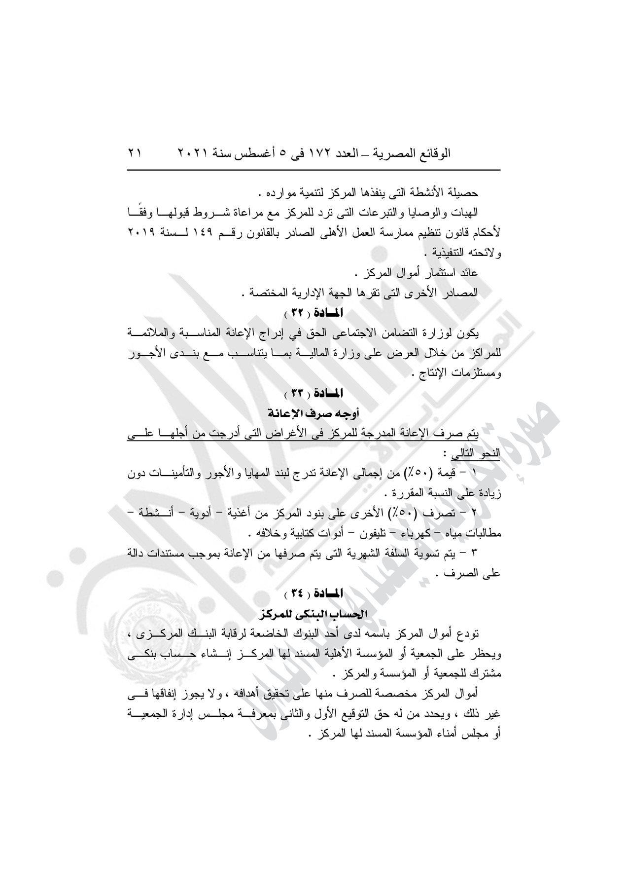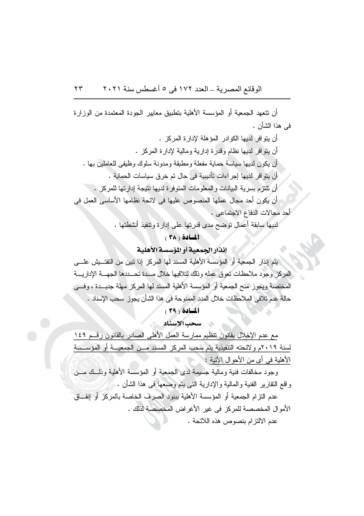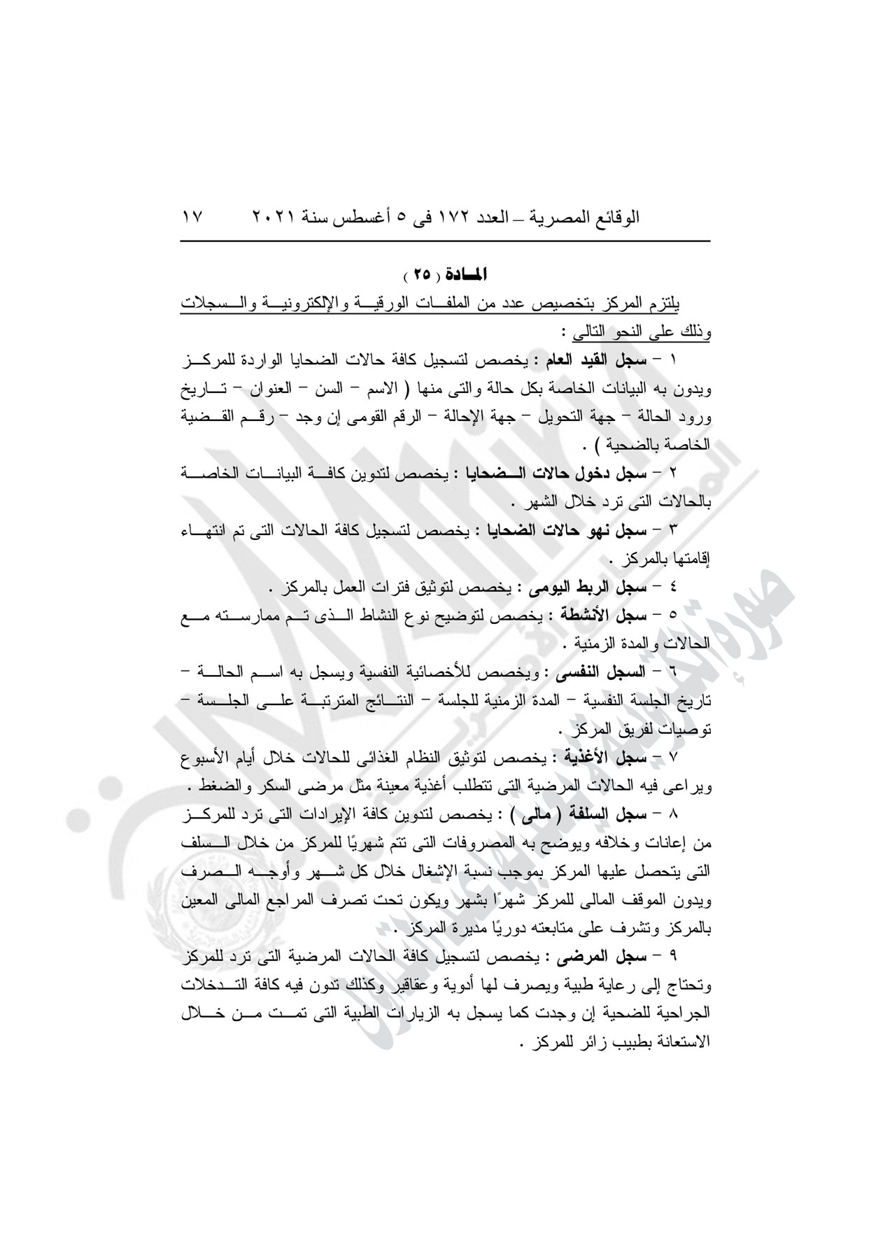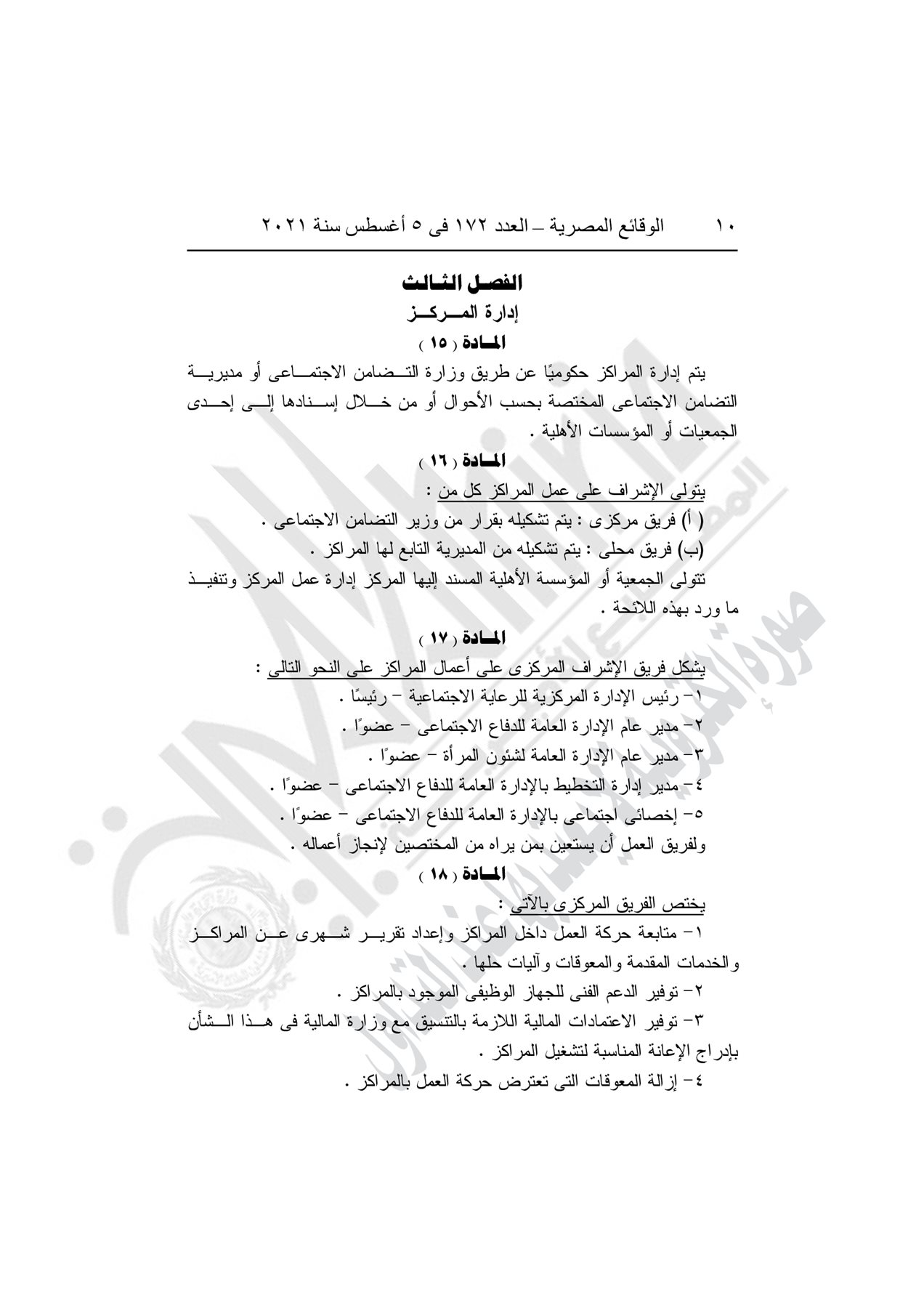 نشرت جريدة الوقائع المصرية في عددها رقم 172، الصادر في 5 أغسطس 2021، قرار وزارة التضامن الاجتماعي رقم 289 لسنة 2021، بشأن العمل باللائحة النموذجية المنظمة للعمل بمراكز ضحايا الإتجار بالبشر.