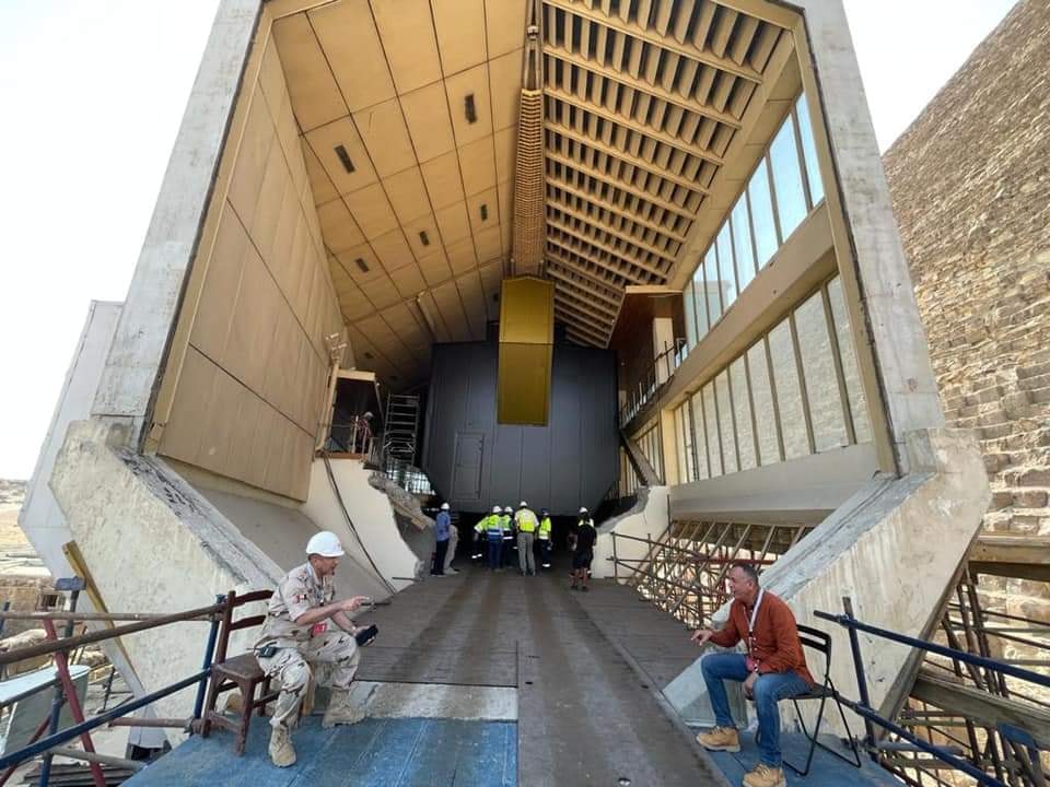 وقال: إنه قد تم فصل المركب عن مبنى المتحف الحالي، وأصبح المركب والهيكل المعدني جزءًا واحدًا تمهيدًا لعملية النقل النهائية بعد الانتهاء من المتبقي من الأعمال الهندسية.