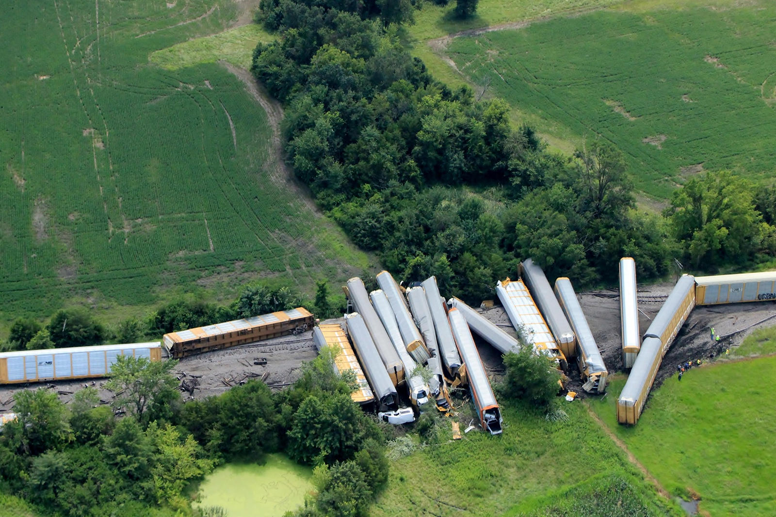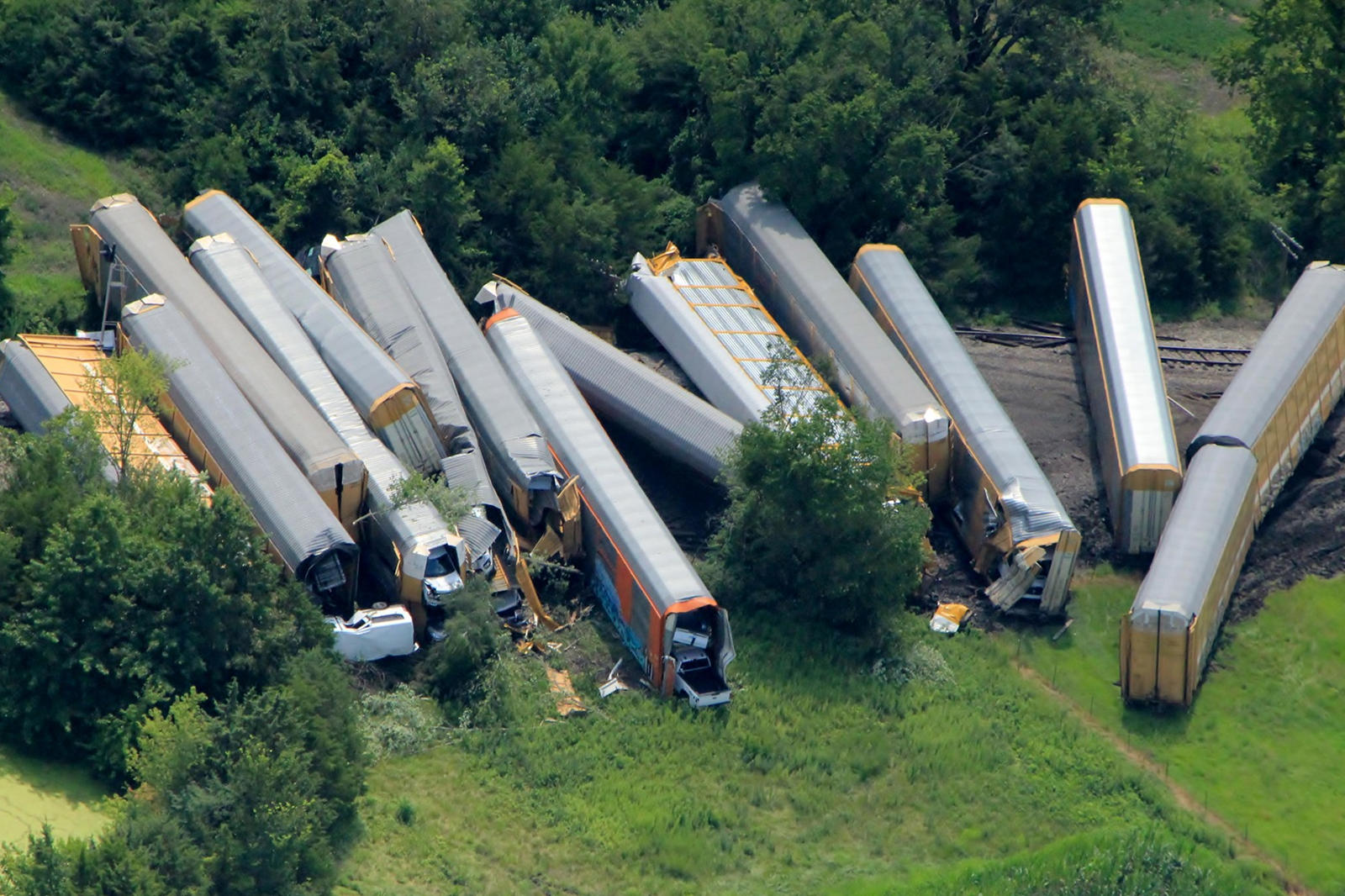 حادثة انحراف قطار ميسوري وتحطم سيارات فورد F-150