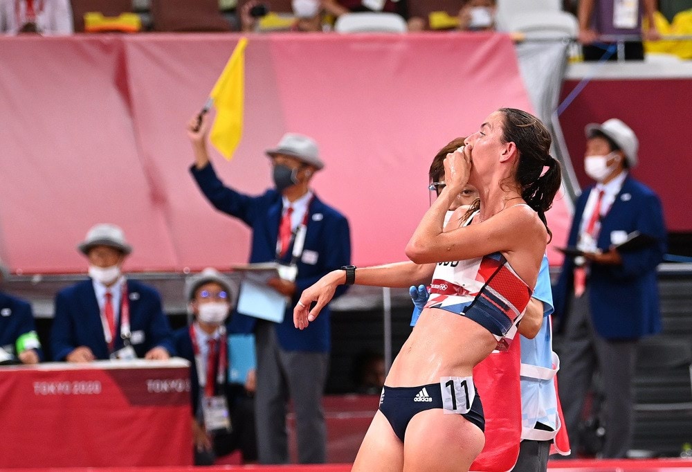 أولمبياد طوكيو| انهارت العداءة البريطانية جيسيكا جود من الإرهاق والتعب، وسعت للحصول على الماء بعد نهاية منافستها في سباق عشرة آلاف متر في أولمبياد طوكيو، في ظل درجة حرارة بلغت 90 درجة فهرنهايت (32 درجة مئوية) و80% من الرطوبة.