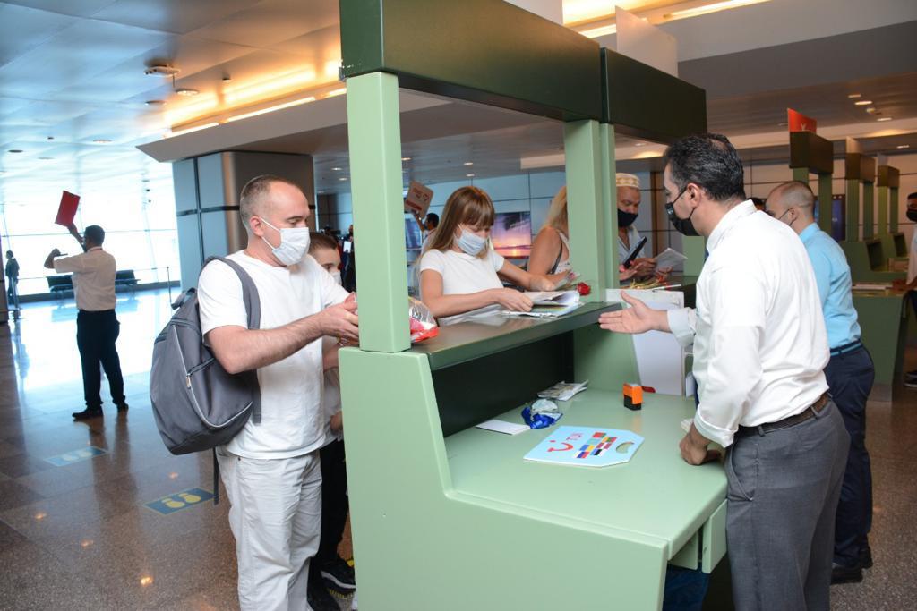 وكان في استقبال الطائرة اللواء مراد محمد مدير مطار الغردقة، كما نظمت إدارة المطار إحتفالا داخل صالة الوصول مع اتخاذ كافة الإجراءات الاحترازية والوقائية.