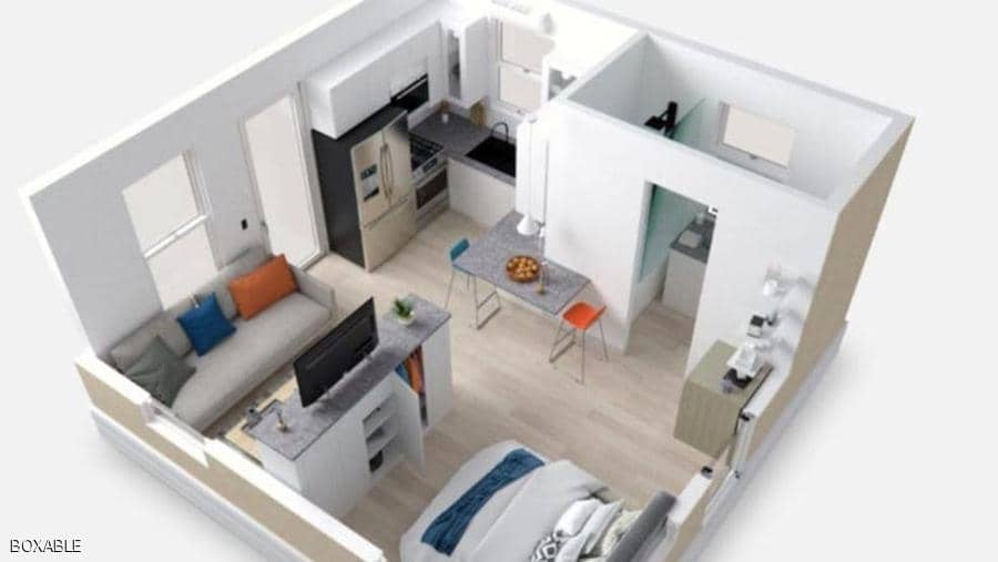 ويتم الانتهاء من جميع تشطيبات المنزل الصغير تقريبا، مثل المطبخ والحمام والكهرباء والسباكة والتكييف، في المصنع قبل شحنها.
