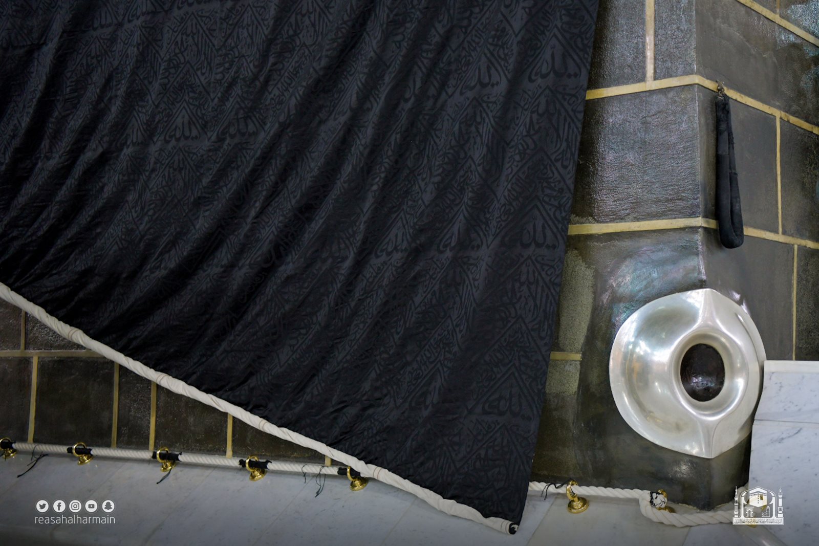 إسدال كسوة الكعبة المشرفة وتثبيتها بحلقات الشاذروان | صور