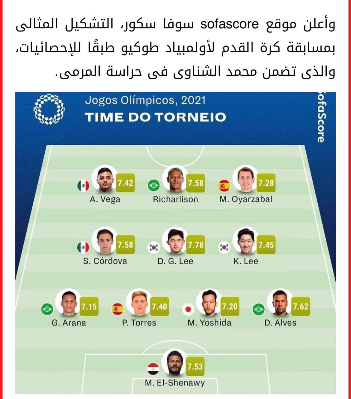 أعلن موقع sofascor، التشكيل المثالي لمسابقة كرة القدم رجال التي أقيمت بأوليمبياد طوكيو 2020، طبقًا للإحصائيات.