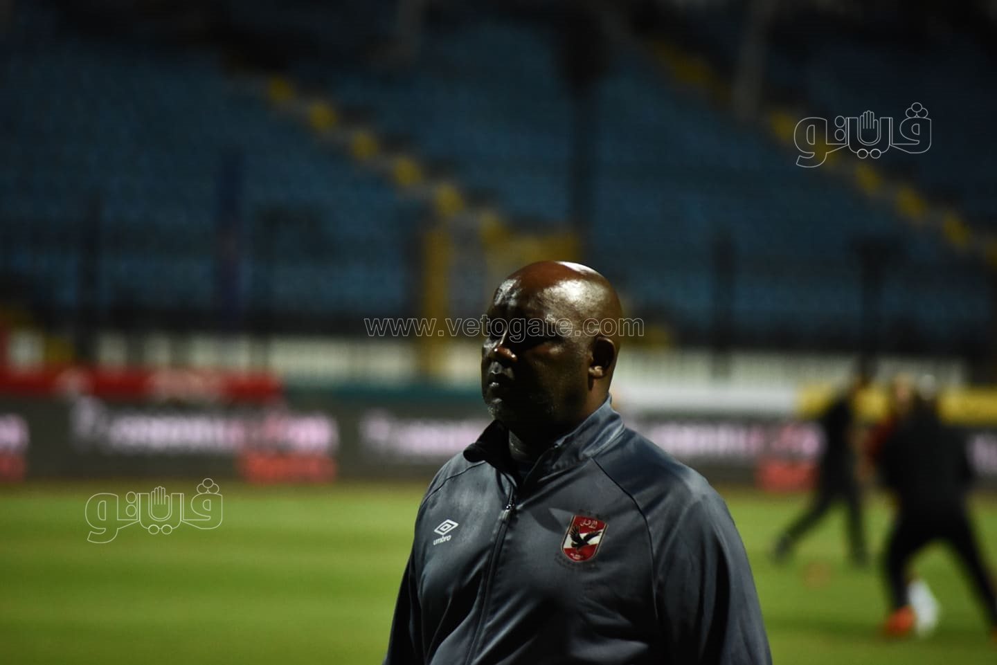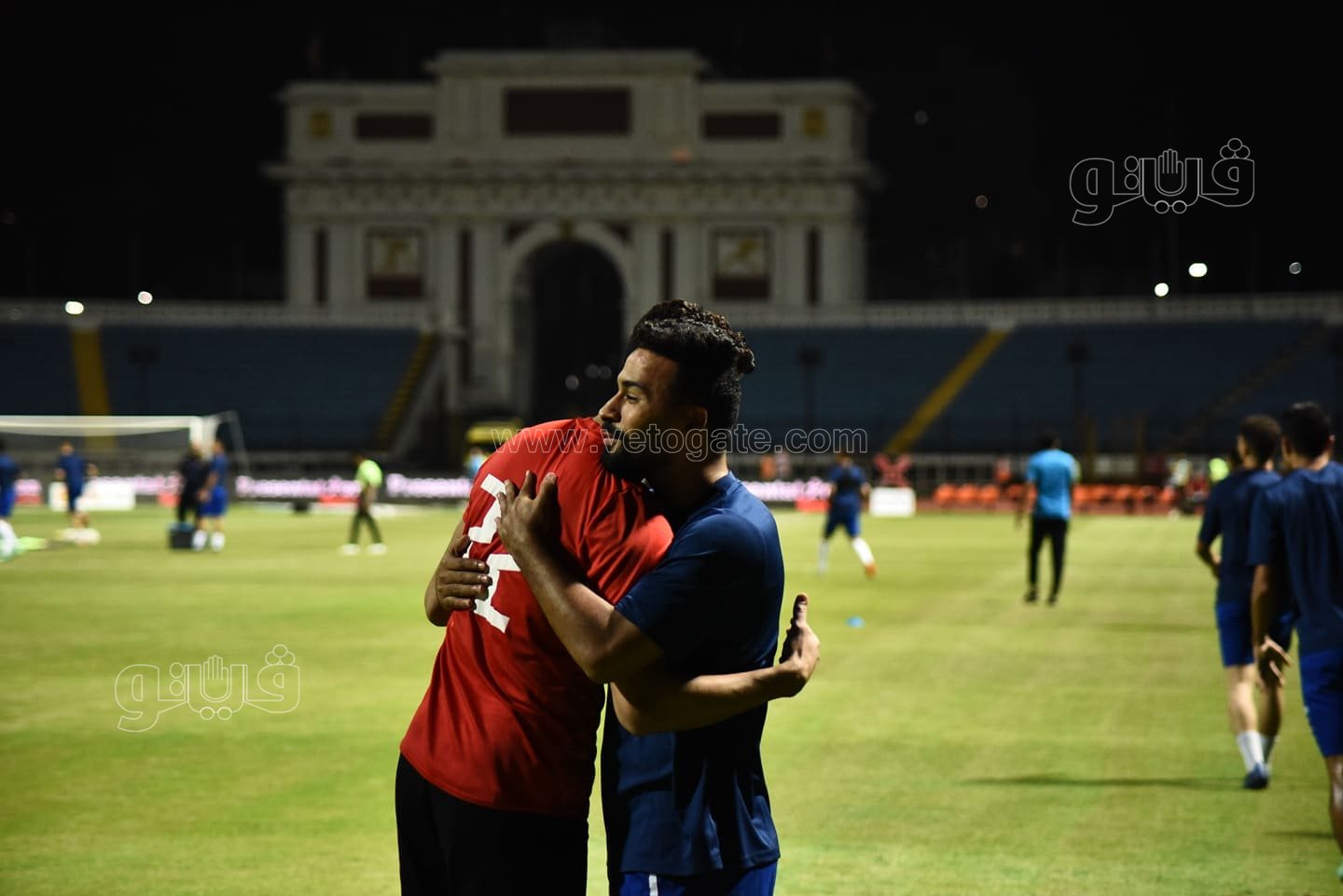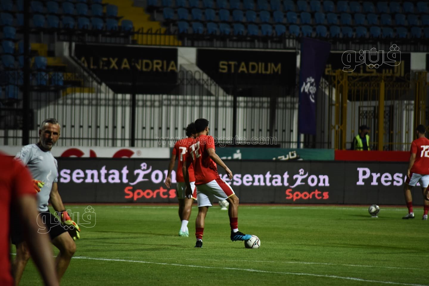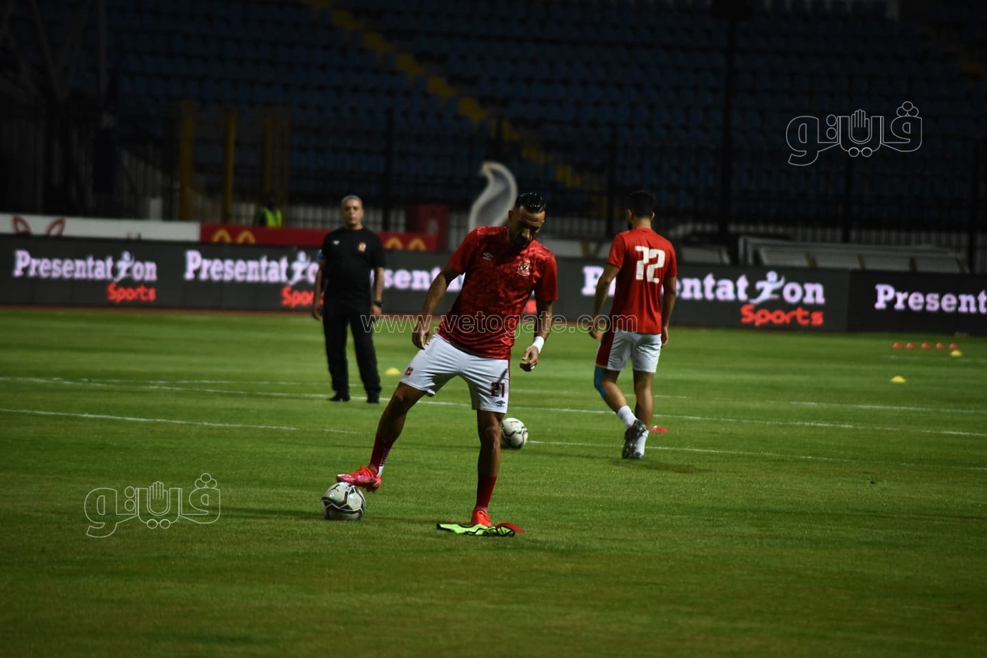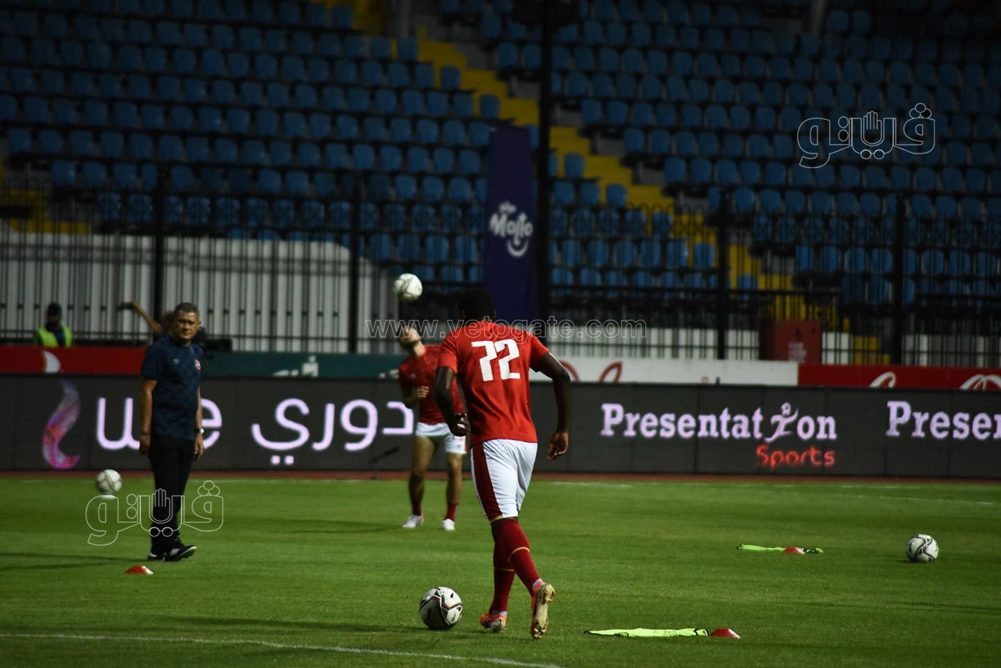 لاعبو الأهلي يجرون عملية الإحماء استعدادا لمباراة الإسماعيلي |صور