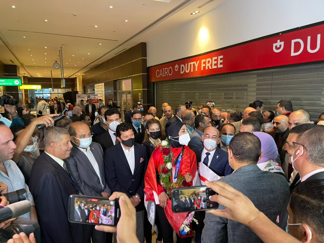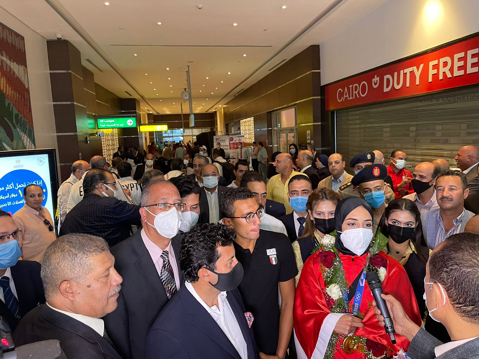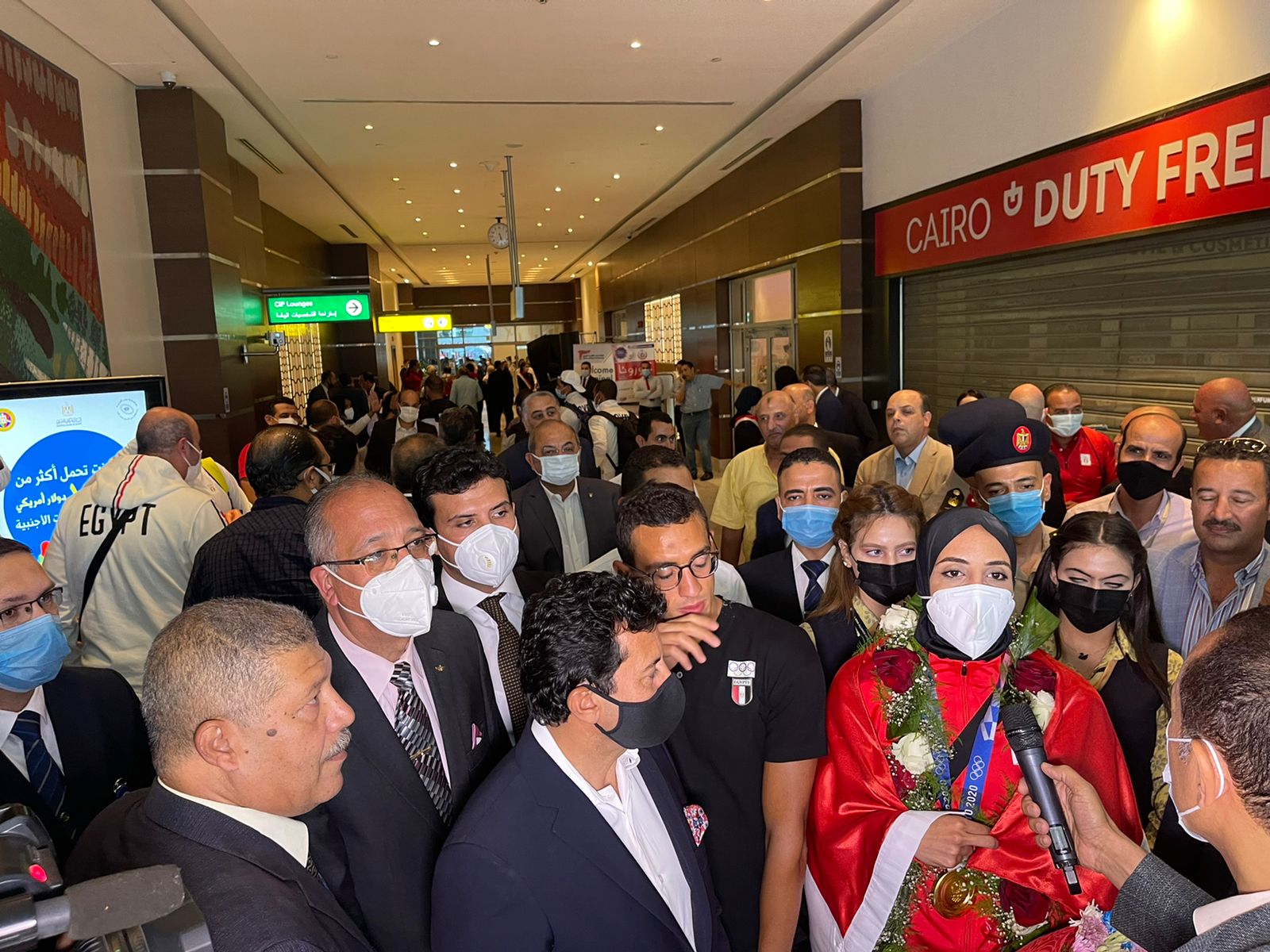 بعد إنجاز أولمبياد طوكيو.. وزير الرياضة يستقبل فريال أشرف وأحمد الجندي بالمطار