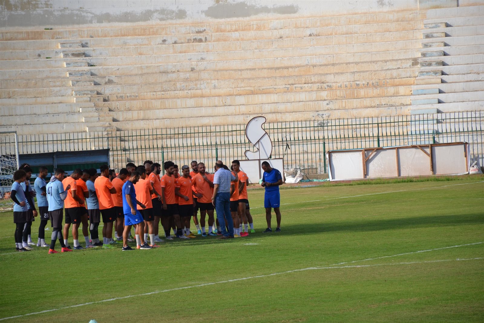 العباسي يجتمع بلاعبي المحلة قبل مباراة سيراميكا | صور