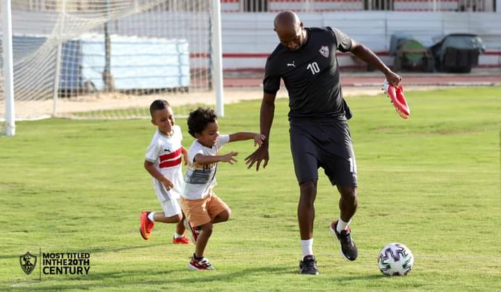 وحرص محمود عبد الرازق "شيكابالا" قائد الفريق على مصافحة نجلي حازم إمام، وقام باللعب معهما على ملعب عبد اللطيف أبورجيلة على هامش مران اليوم.