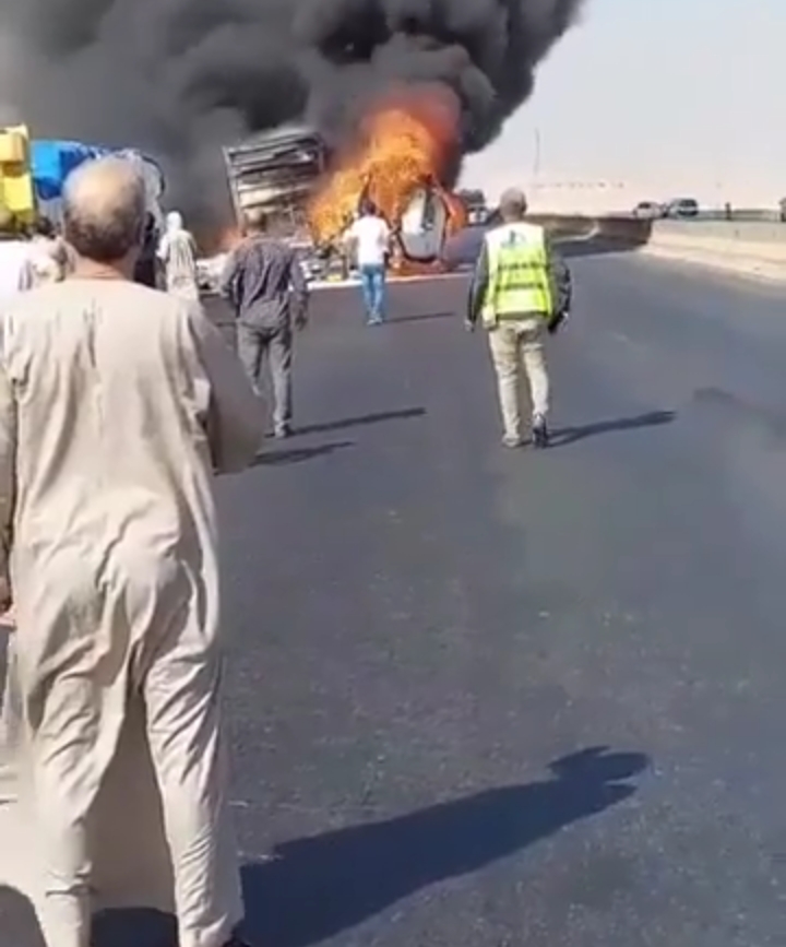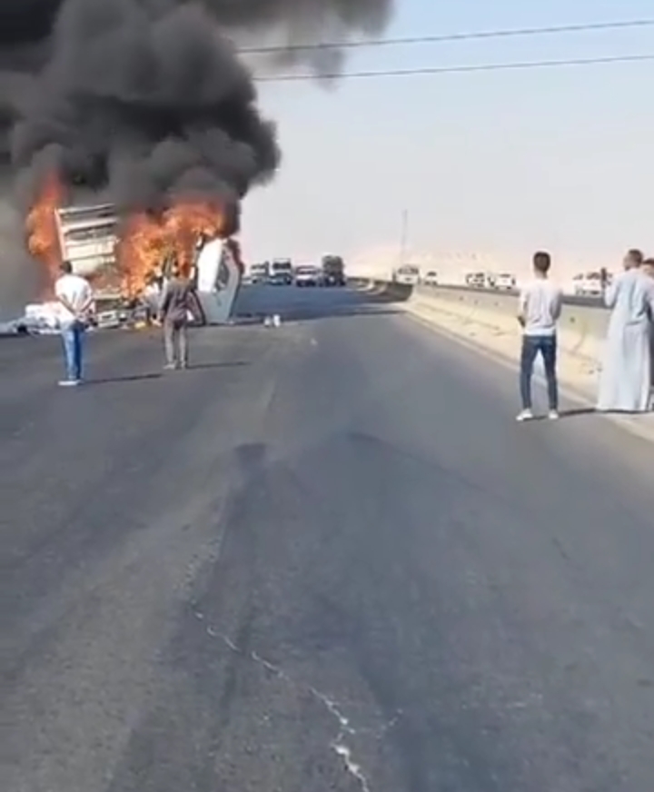 وبالفحص تبين تفحم سيارة نقل بالكامل وجارى تفريغ كاميرات المراقبة وسؤال شهود العيان للوقوف على ملابسات الواقعة.
