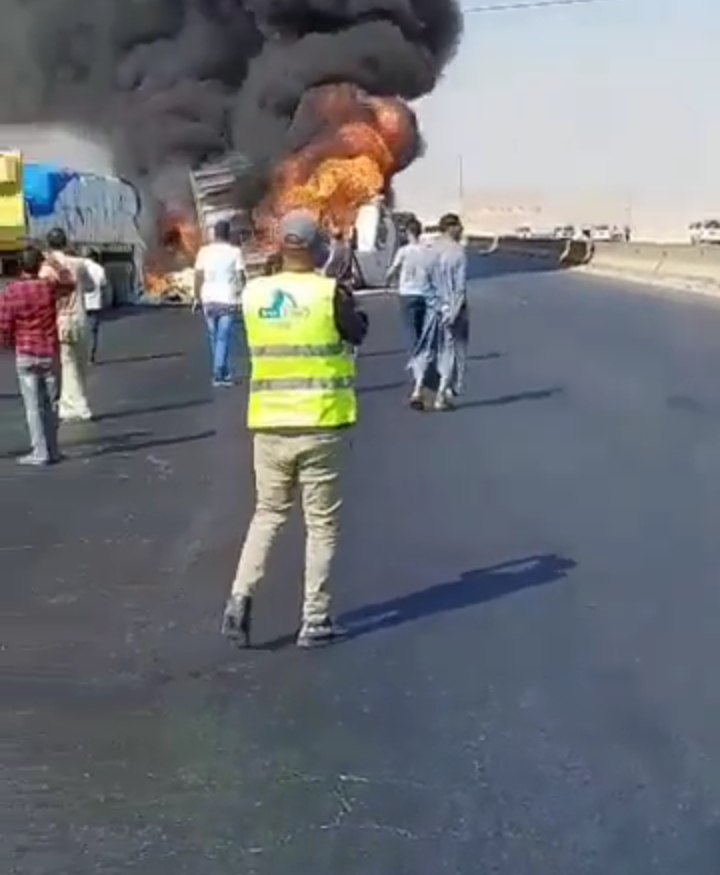 حريق سيارة نقل أعلى الطريق الإقليمى