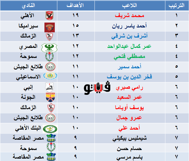 وجاء جدول ترتيب هدافي الدوري الممتاز كالتالي: