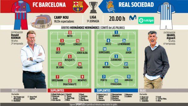 مباراة برشلونة وريال سوسيداد ستكون المباراة الرسمية الأولى للفريق الكتالوني عقب رحيل النجم الأرجنتيني ليونيل ميسي وانضمامه لباريس سان جيرمان الفرنسي.