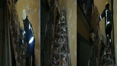 وتبين أن العقار مكون من أرضي وثلاثة أدوار ومشغول بالسكان، ويوجد إصابة واحدة، والعقار صادر له قرار ترميم رقم ٥ لسنة ٢٠٠٥، وتم اتخاذ كافة الإجراءات القانونية اللازمة.