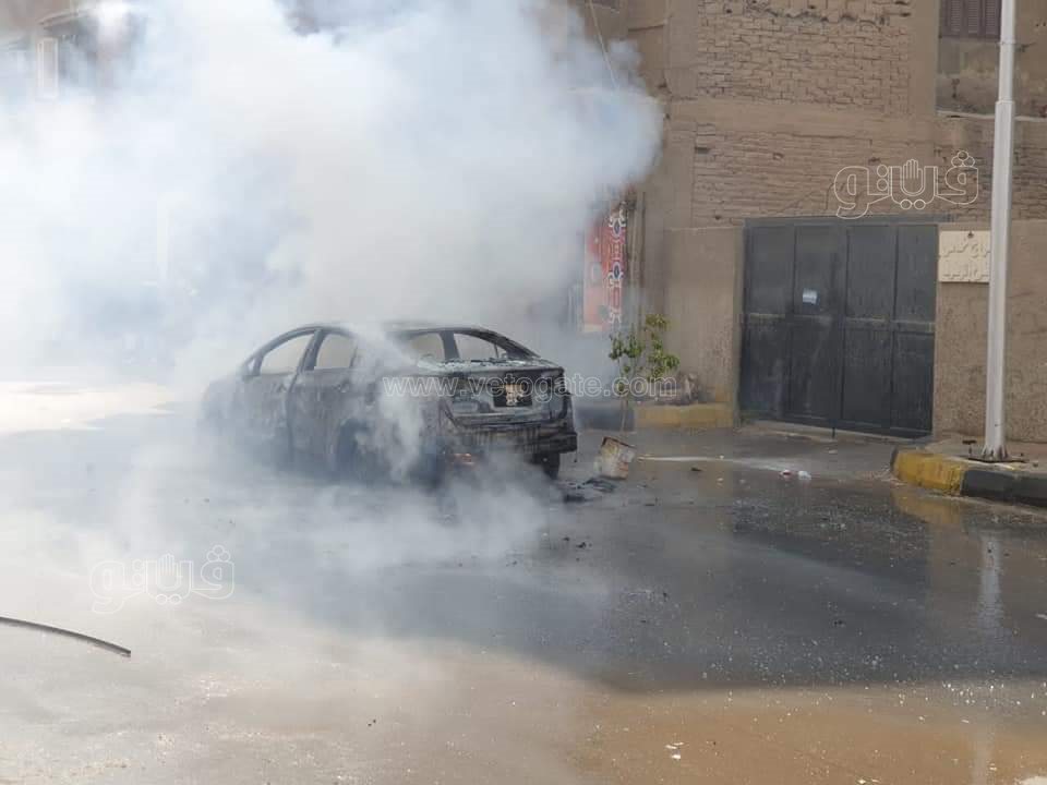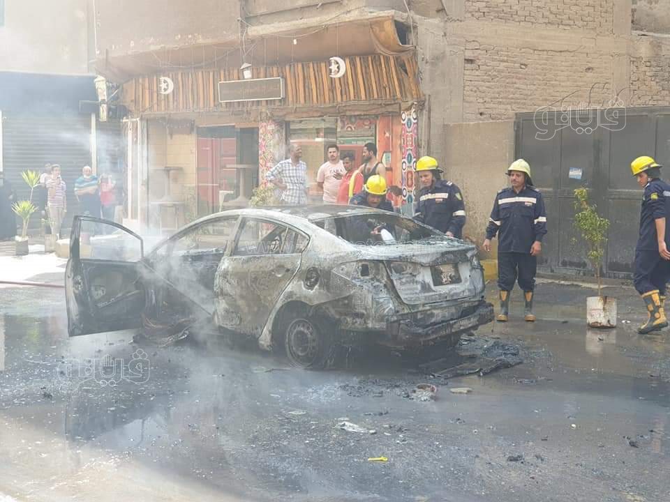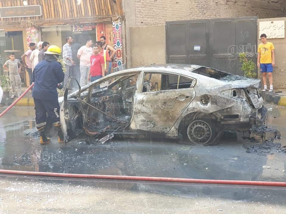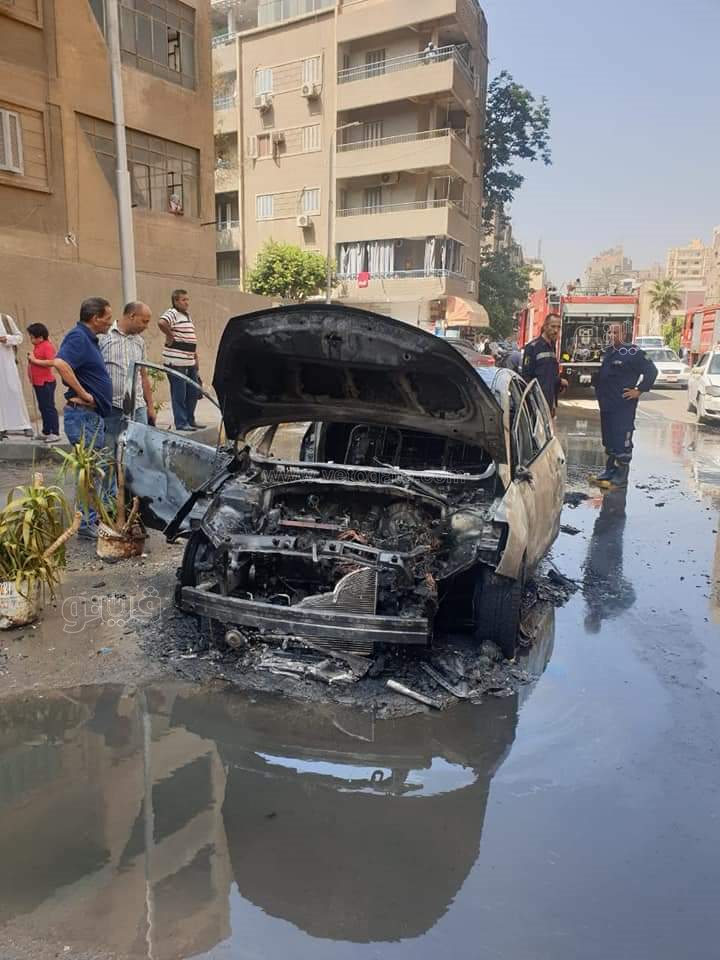 وبالفحص تبين تفحم سيارة ملاكي بالكامل وجار تفريغ كاميرات المراقبة وسؤال شهود العيان للوقوف على ملابسات الواقعة.
