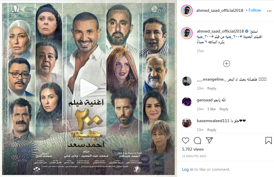 وكتب أحمد سعد قائلا: "استنوا أغنيتي الجديدة #٢٠٠_جنيه من فيلم #٢٠٠_جنيه بكره الساعة ٦ مساءً".