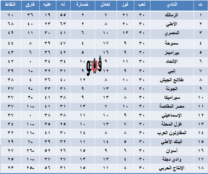 1- الزمالك 70 نقطة